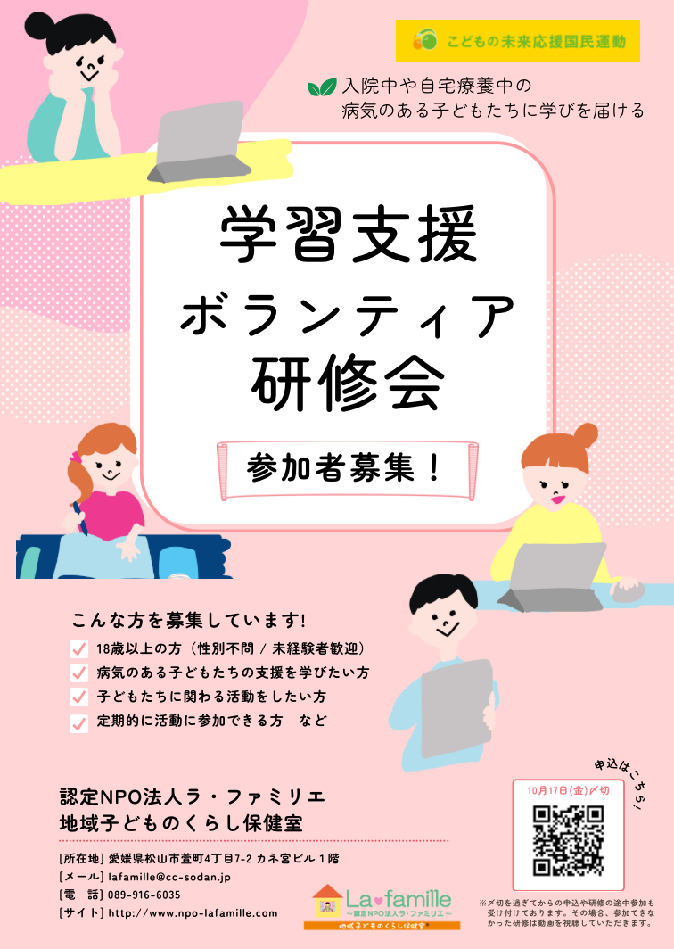「学習支援をしてみたい」「病気のある子どもやご家族のことを知りたい」そんな思いを持つ方、大歓迎です!