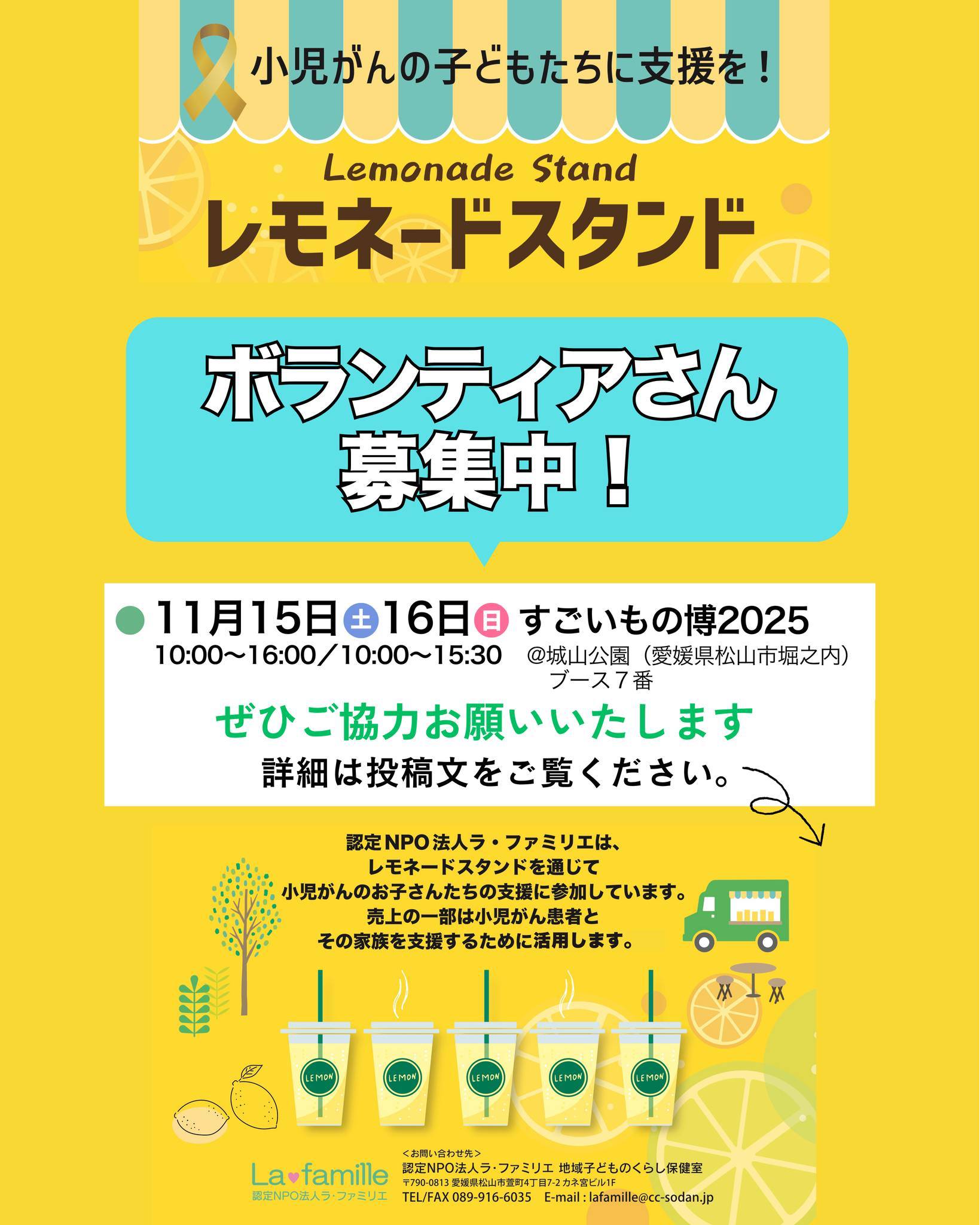 ボランティアスタッフ募集!!🍋レモネードスタンド@すごいもの博2025