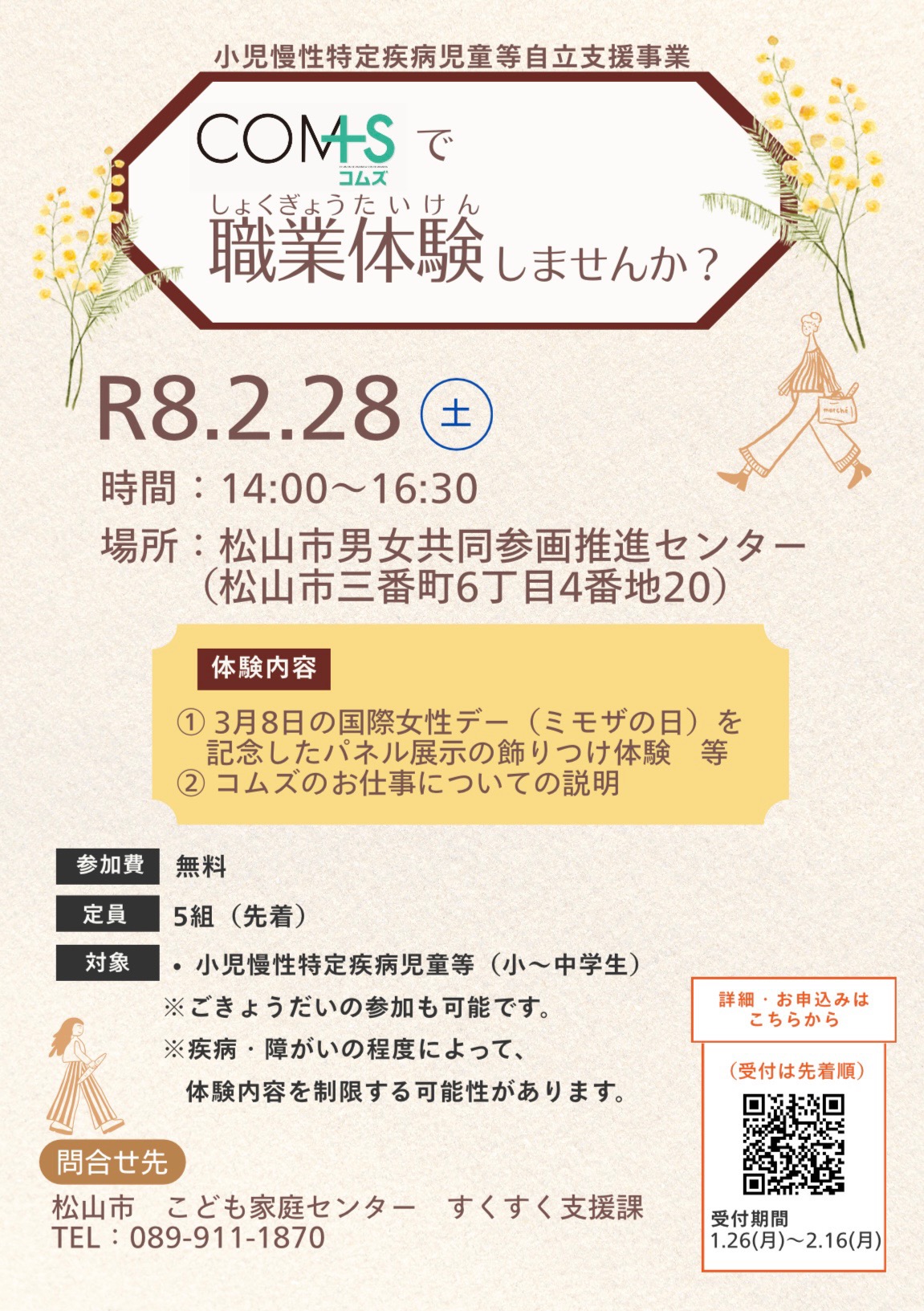 自立支援事業の一環として、小児慢性特定疾病のあるお子さんときょうだいさんを対象に、松山市主催にて職業体験を開催します!!