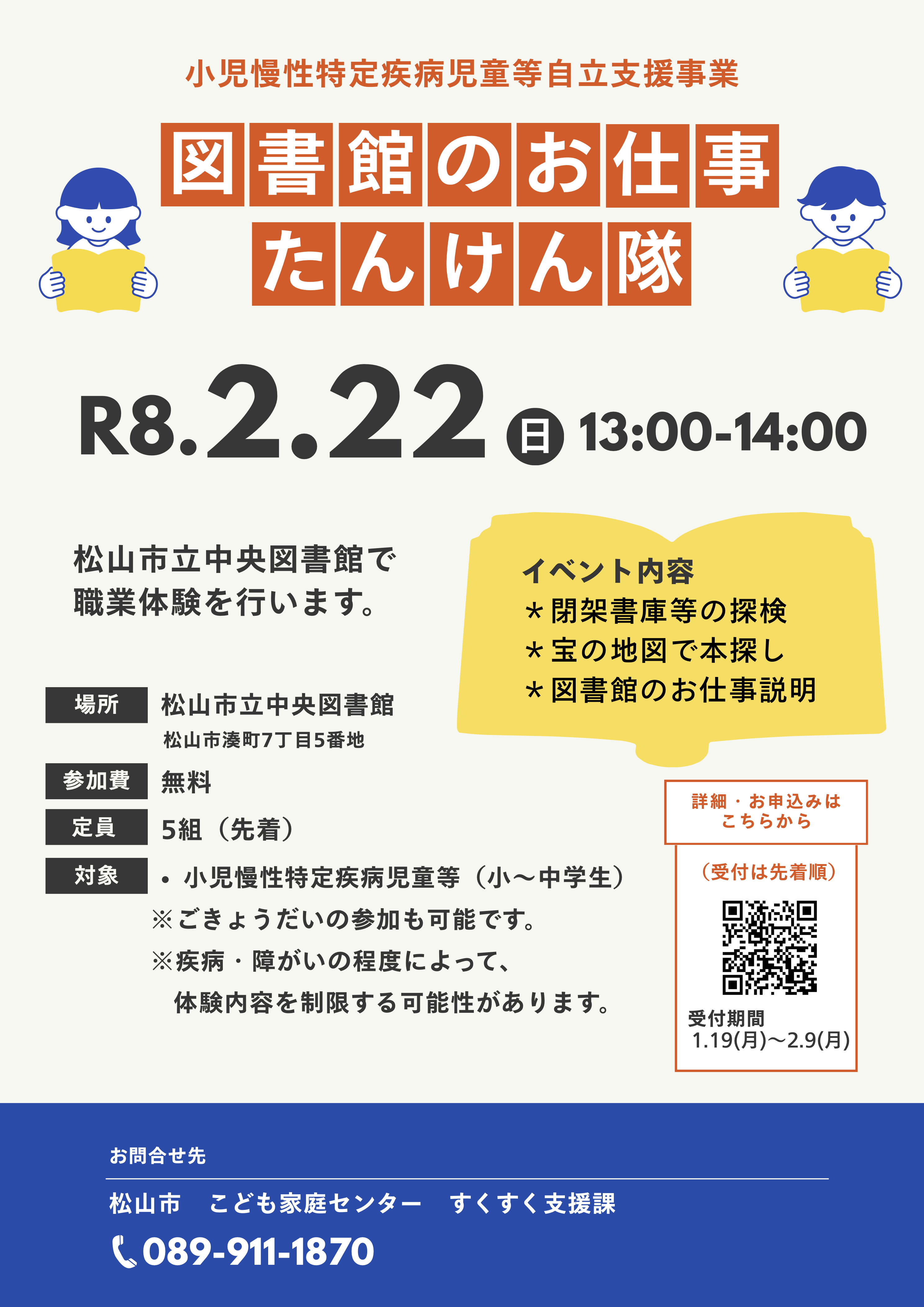 「図書館のお仕事 たんけん隊」(※ 松山市主催)のお知らせ